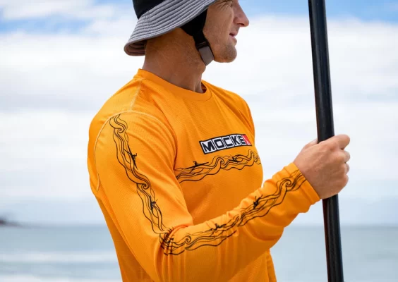 - 2P Technical Polyfleece: a hydrophobic (repels water) material that dries in a flash because it can’t hold water. This provides protection against wind-chill where most rashies will actually make you colder because wind-chill is 25x more effective on a wet surface.