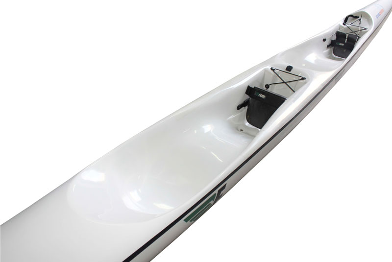 Fenn Doubles have traditionally been set up for taller paddlers. The Elite ‘S’ Double will take very small paddlers because of the closer seating position and less hump under the legs. The new fitted seat has been a huge hit for paddlers of this craft. The ‘S’ Double handles like a single in the runs with unbelievable manouverability. With seats forward the ‘S’ has incredible flat water speed that leaves its rivals in its wash.