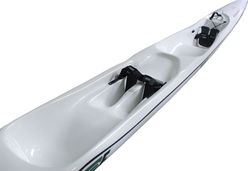 You want comfort and stability then this is the boat. By far the most stable double ski you will ever sit in without giving up too much speed. Fully adjustable front and back this is the choice for Adventure Racers and those looking to cover big miles with ease. The XT double has a single footwell in the front and a double footwell in the back as shown in the image.