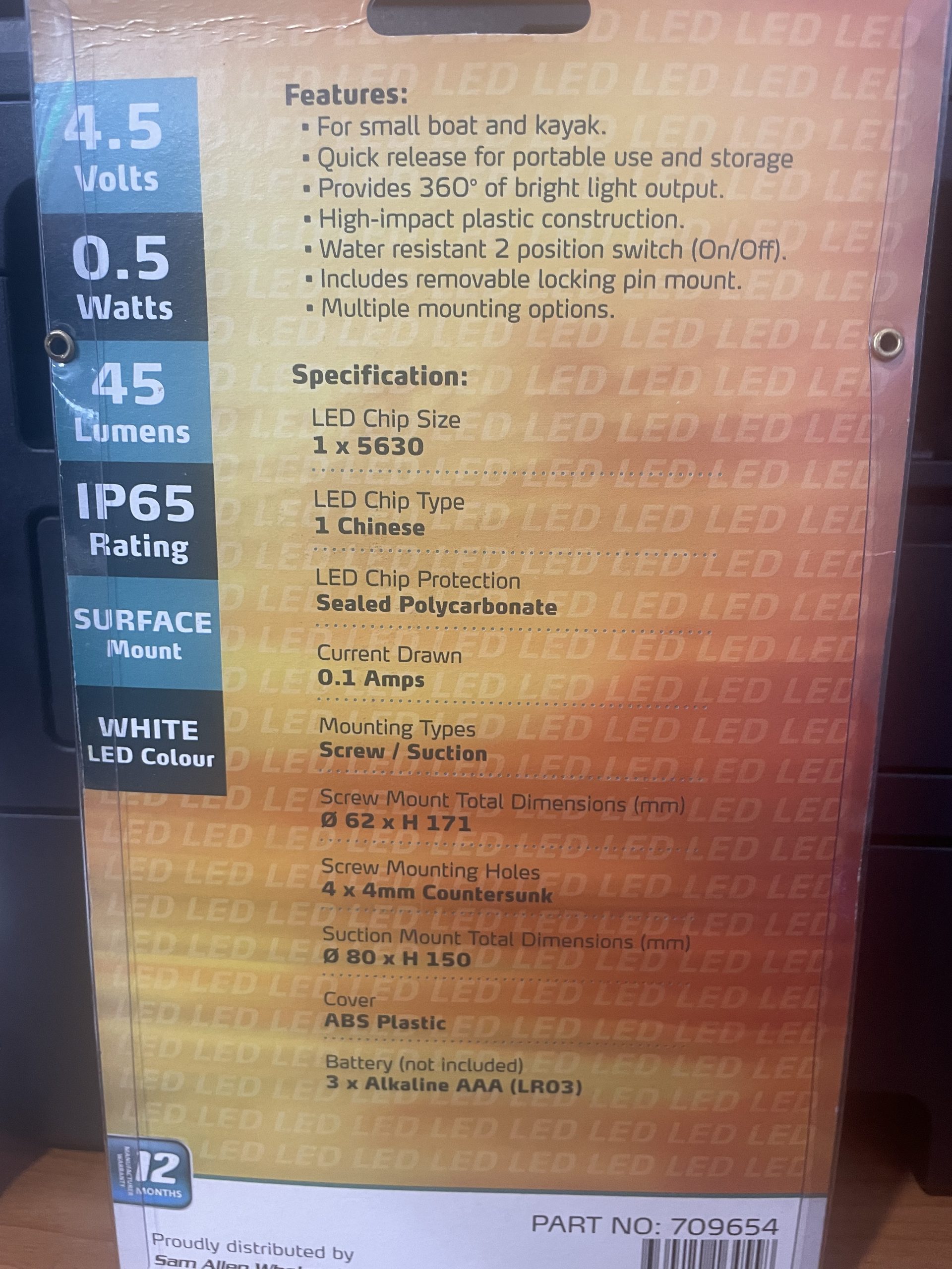 Portable LED Kayak Light with suction & screw mount.