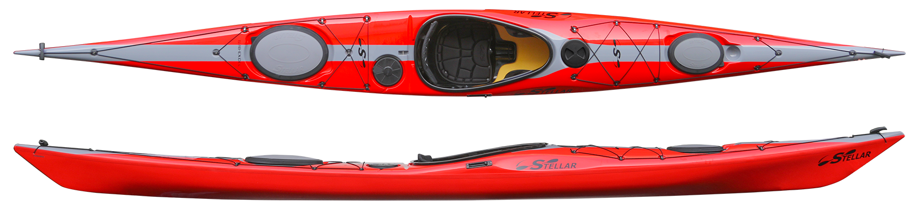 The Stellar Intrepid 18′ (SI18) Sea Kayak, a very capable and more traditional hull design. Hard chines, a defined keel and a retractable skeg provide excellent handling in the Rock-Gardens or longer adventures. With 3 sealed storage compartments, a small day hatch in front of the cockpit and deck rigging, the SI18 provides plenty of storage options and accessibility. A molded seat pad and thigh brace provide comfort and stability when it gets rough.